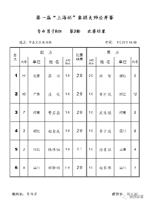 男子B组第二轮中,五届全国象棋冠军、老将吕钦执红战胜全运会团体冠军浙江队功臣黄竹风。开局吕钦仙人指路对竹底炮,获得主动,中盘双方攻杀,吕钦一招車沉底,海底捞月,巧妙地战胜对手。