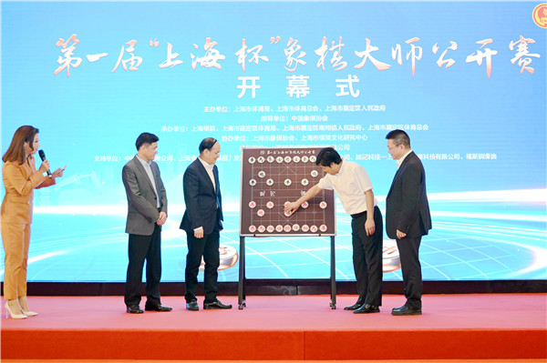 今天上午,第一届“上海杯”象棋大师公开赛在上海南翔开枰,国家体育总局棋牌运动管理中心主任、党委书记、中国象棋协会主席朱国平、胡荣华象棋基金会发起单位上海地产(集团)有限公司党委书记、董事长冯经明、上海市体育局党组成员、副局长许琦、上海市嘉定区人民政府副区长王浩出席开幕仪式,并为比赛开棋。出席开幕式的还有中国象棋协会秘书长郭莉萍、上海市体育局竞赛处处长刘琦、上海棋院院长单霞丽、上海市嘉定区体育局党组书记、局长陈冬梅、上海市嘉定区南翔镇党委副书记、镇长吴雪芬等领导嘉宾。