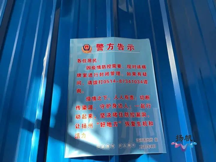 警方提醒,目前,暂停棋牌室、网吧等密闭场所营业是有效阻断疫情扩散蔓延的重要措施,在未得到扬州市新冠肺炎疫情防控工作指挥部发布的复工通告前,棋牌室、网吧等密闭场所一律禁止营业。请广大经营业主珍惜扬州来之不易的疫情防控成果,坚决执行相关规定,共同珍惜、维护良好的防疫环境!