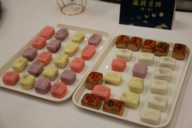 从外观上看,这些月饼与传统的印花月饼不一样,采用的都是趣味的印花造型:一个个仿真象棋月饼摆在楚河汉界分明的棋盘上,还有象征好寓意的五颜六色的麻将冰皮月饼,印着六万、八万、发财、红中等字样。